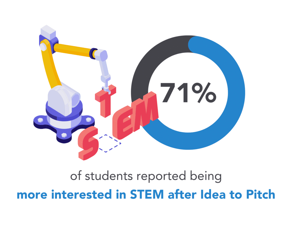 Students shared their reflection in anonymous post-program surveys. They shared how much they enjoyed working together, using their imaginations, and creating products from random objects. Students also reported an increase in entrepreneurial mindsets and skills, with a notable increased interest in STEM.